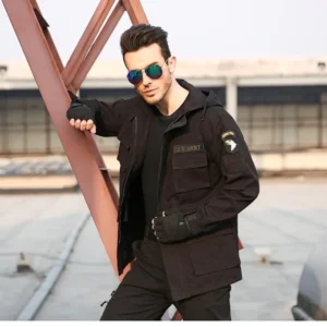 Inspired by the iconic Eisenhower jacket, this trench coat features a timeless design that exudes authority and sophistication. The coat is available in two classic colors: Military Green and Black, allowing wearers to choose a hue that best suits their style and operational requirements. The clean lines and structured silhouette provide a professional appearance, making it suitable for both formal and casual settings.